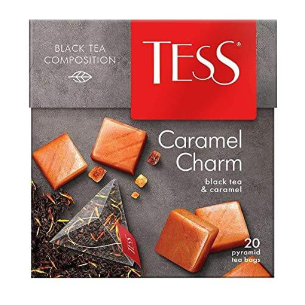 Te Negro Caramel Charm (20 bolsitas piramide) – Tess Quien necesita postre cuando hay Caramel Charm? El te negro con aroma de caramelo dulce que se derrite en la boca es una delicia realmente memorable. Delicioso Te Caramel Charm trae una exquisita mezcla de: Te Negro Caramelo 1 bolsita cada 200ml de agua. Preparacion: Deje reposar entre 3-5 min el te en agua entre 95 -100 . Retire el te. Disfrute! Atrevete a probarlo!